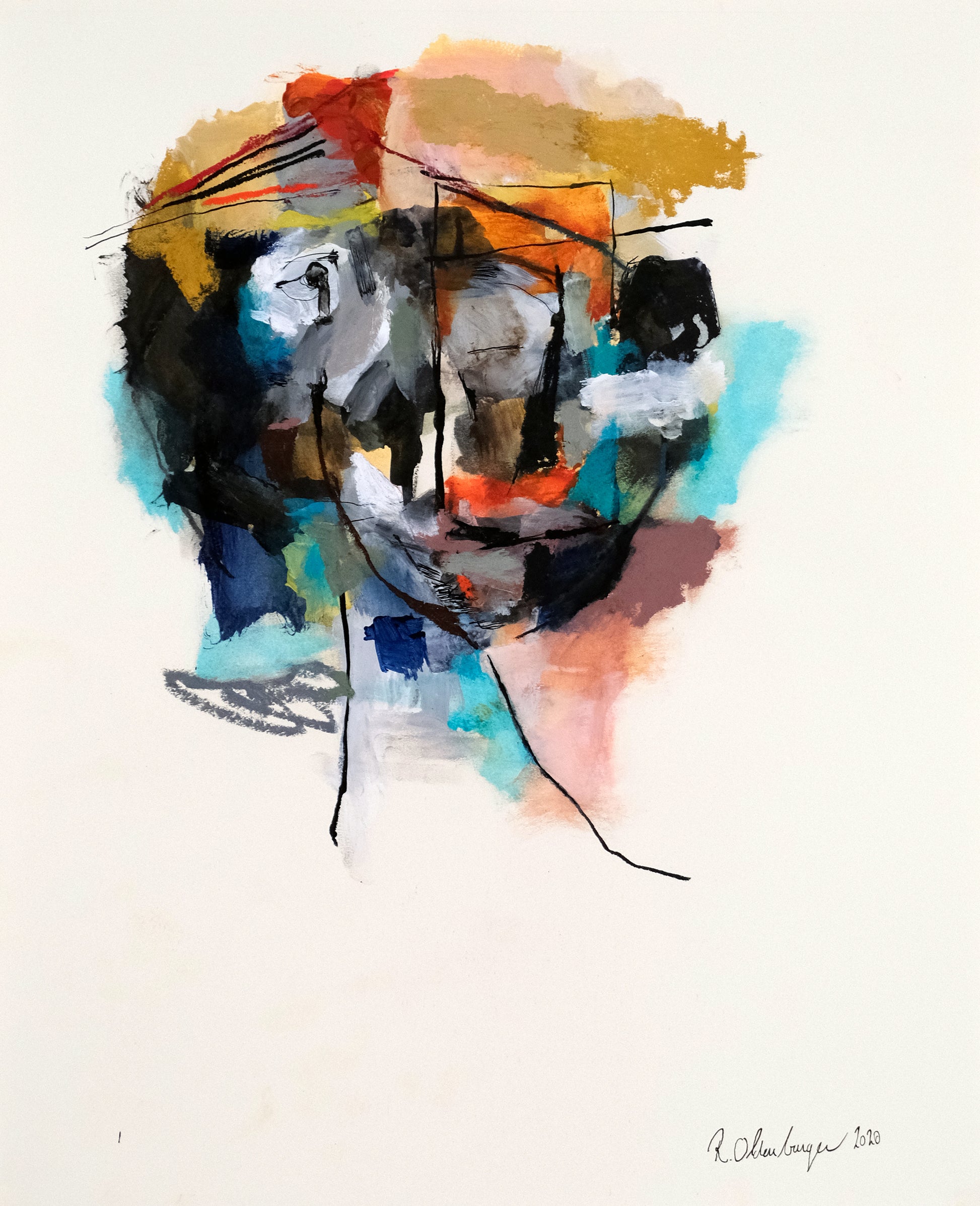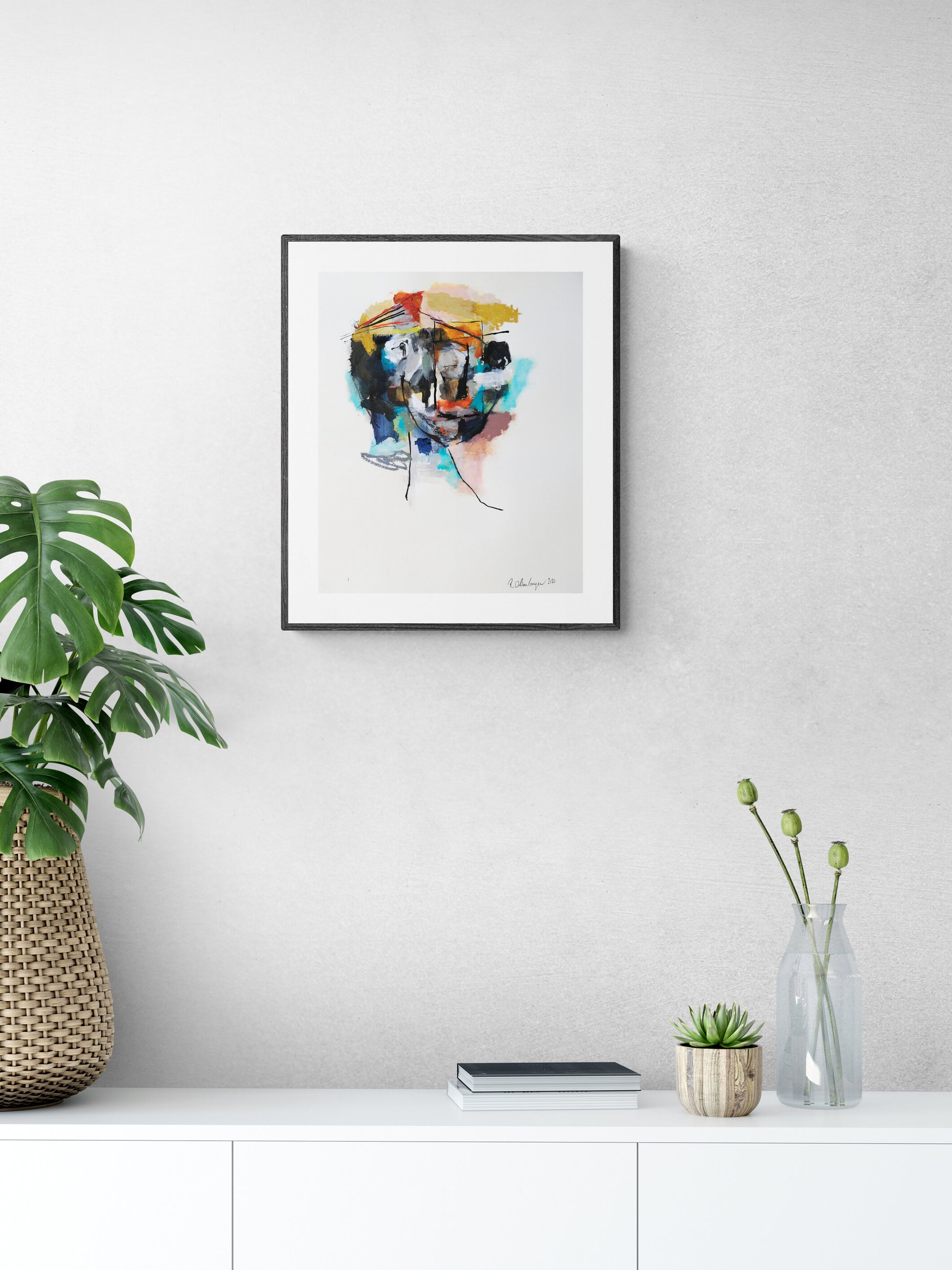 This original work on paper titled "Abstract Head (composition #1) is 14x17 inches in ink, acrylic, oil pastel, pastel and water color on Strathmore paper. It was made in July 2020, Los Angeles and is signed and dated on the front. This piece will ship in a cardboard box with a certificate of authenticity included.