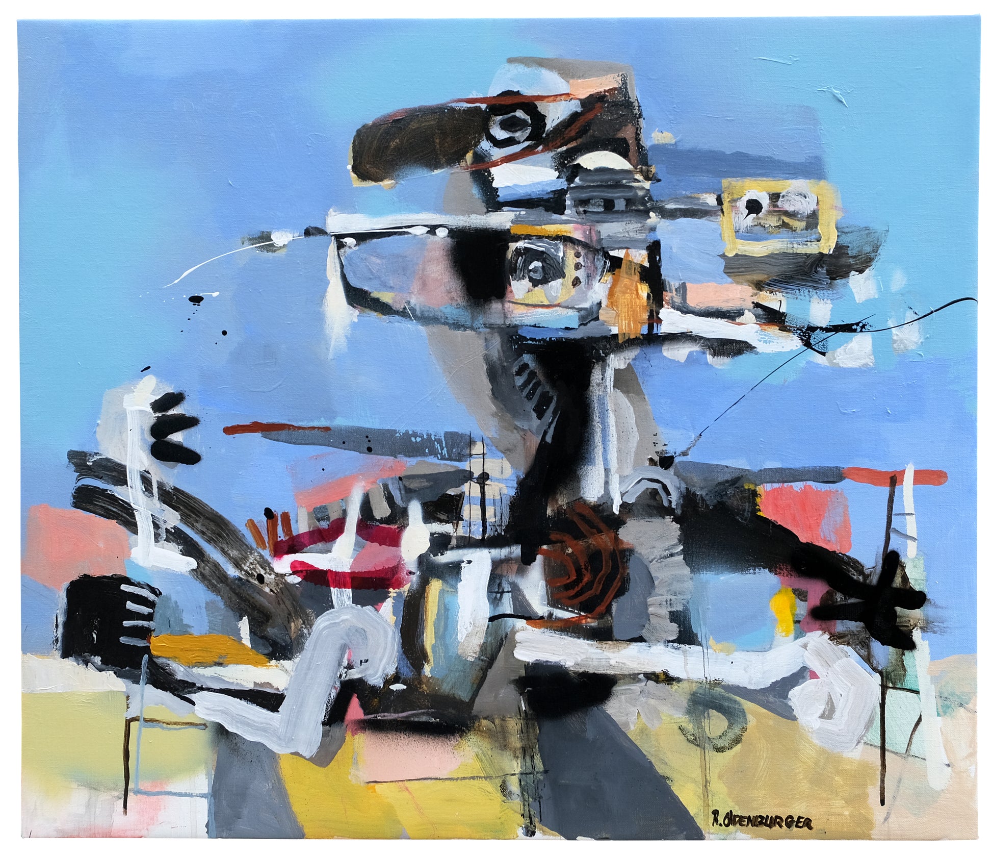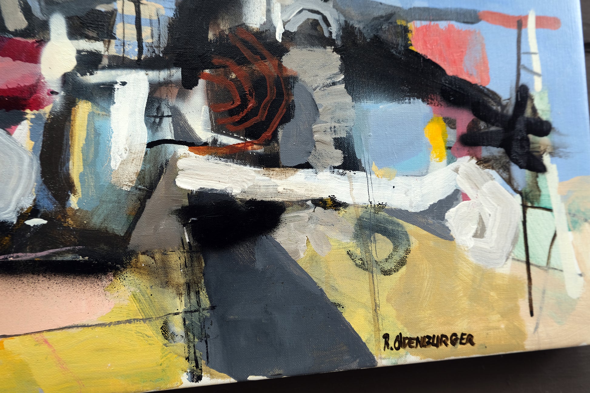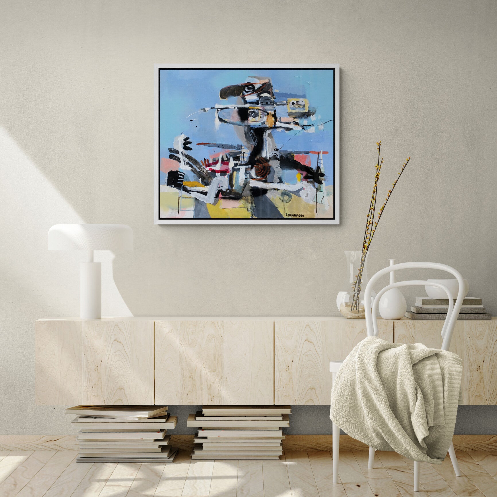 This original painting titled "Leap of Faith" is 28x24 inches in acrylic and spray paint on linen canvas. It was made in Los Angeles, October 2021 and is signed on the front and dated on the back. This work will ship ready to hang with a certificate of authenticity included.