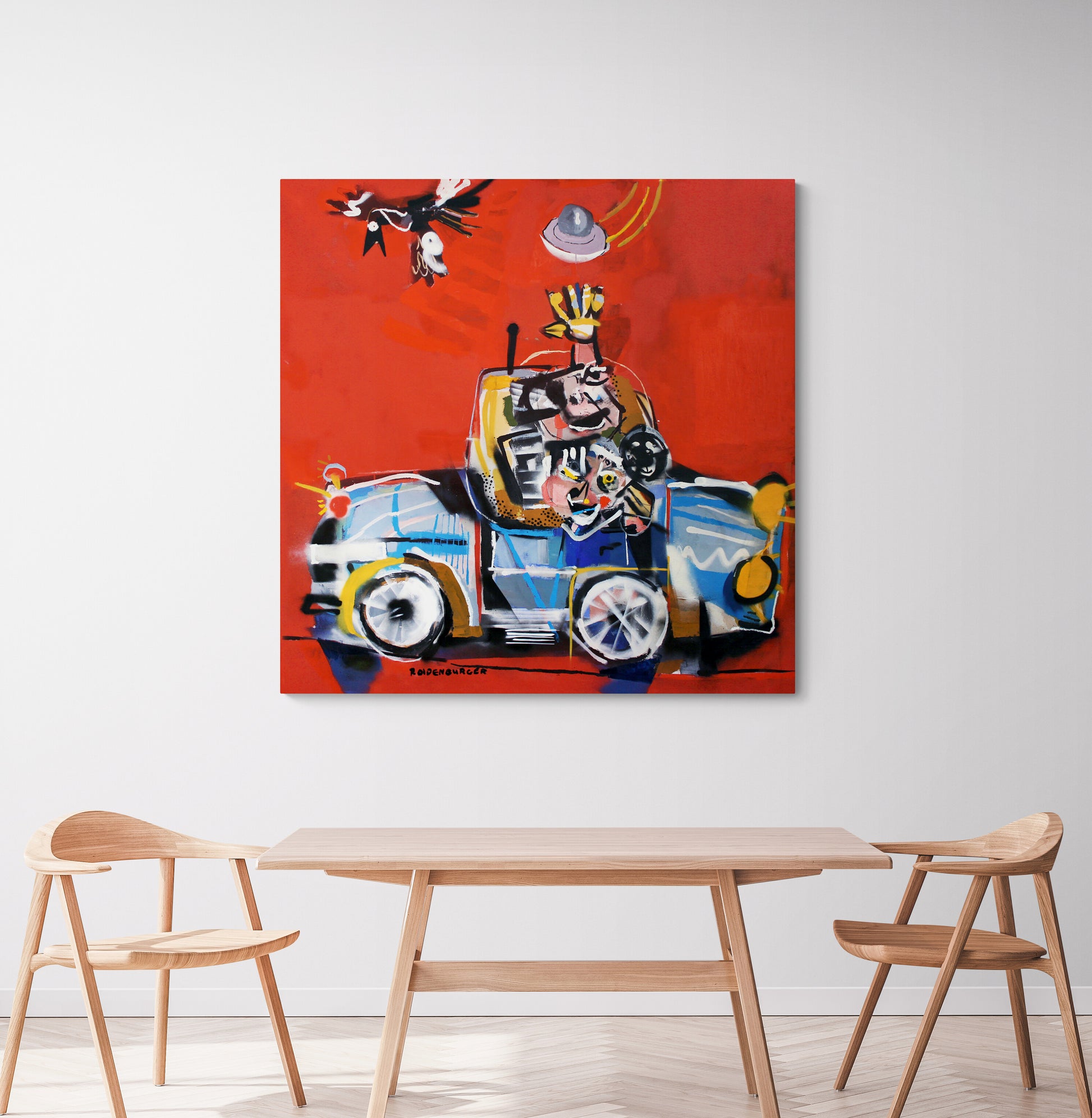 This original painting titled “Move Back, Move Along, Move Forward, Movin' On” is approx. 54x54 inches (when stretched) in acrylic, spray paint and oil stick on canvas. It was made in Los Angeles, August-September 2018 and is signed on the front and dated on the back. Due to its large size this canvas will ship carefully rolled up in a solid mailing tube and will need to be stretched onto stretcher bars before it can be hung. Certificate of Authenticity will be included.