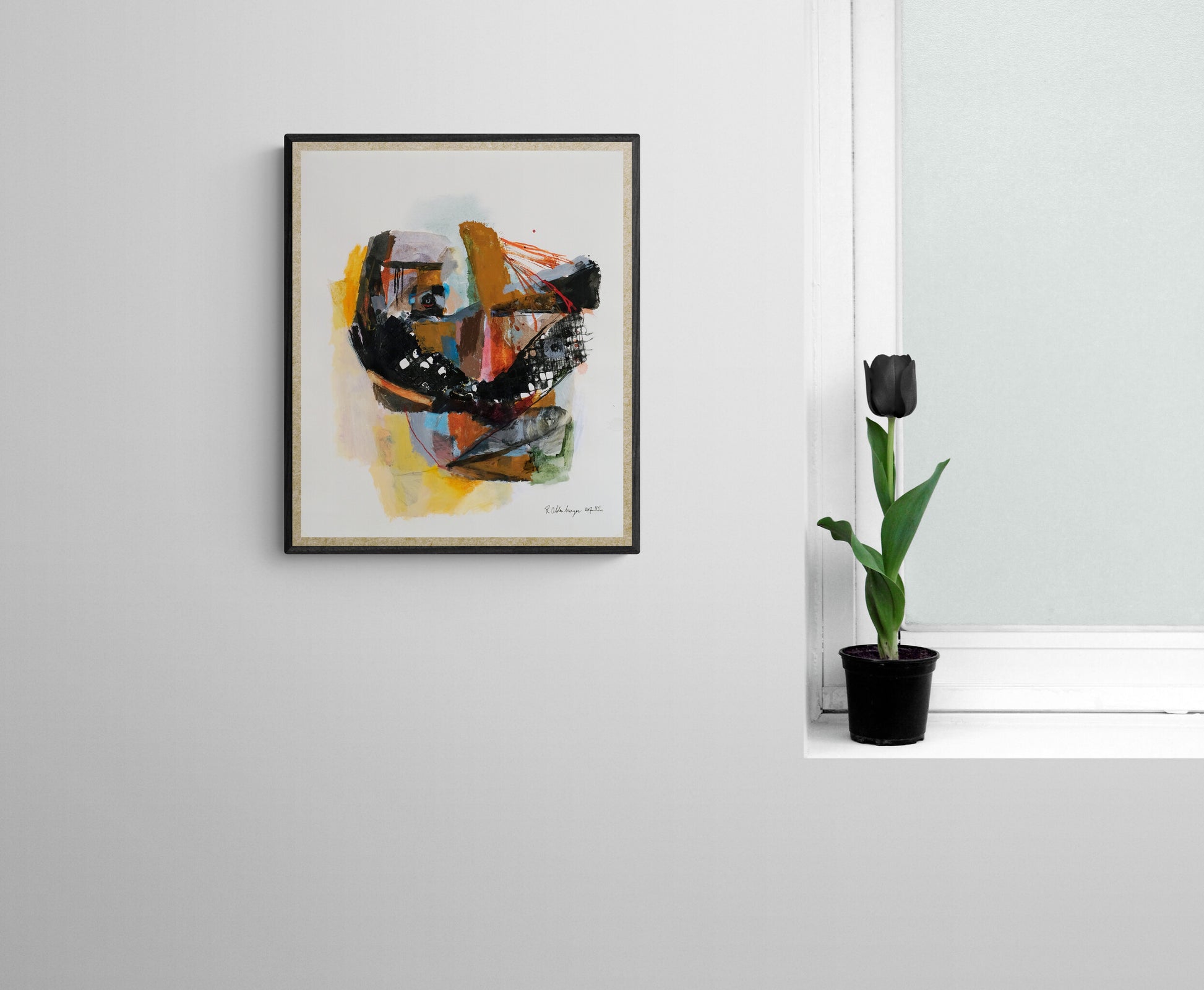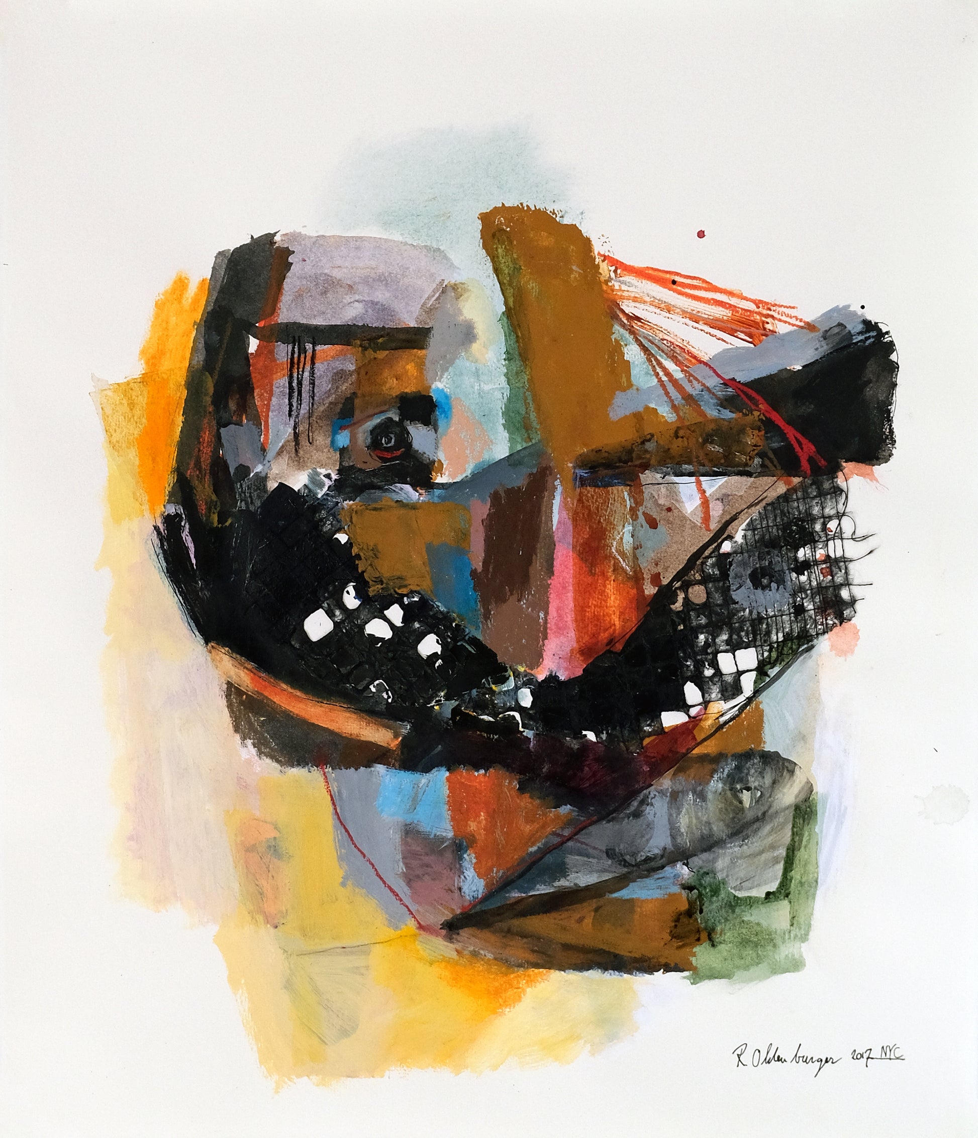 This original painting titled "Sombre" is 15.5x18 inches in ink, acrylic, pastel, oil pastel and collage on Hahnemühle paper. It was made in New York City, January, 2017 and is signed and dated on the front. This work will ship in a box with a certificate of authenticity included.