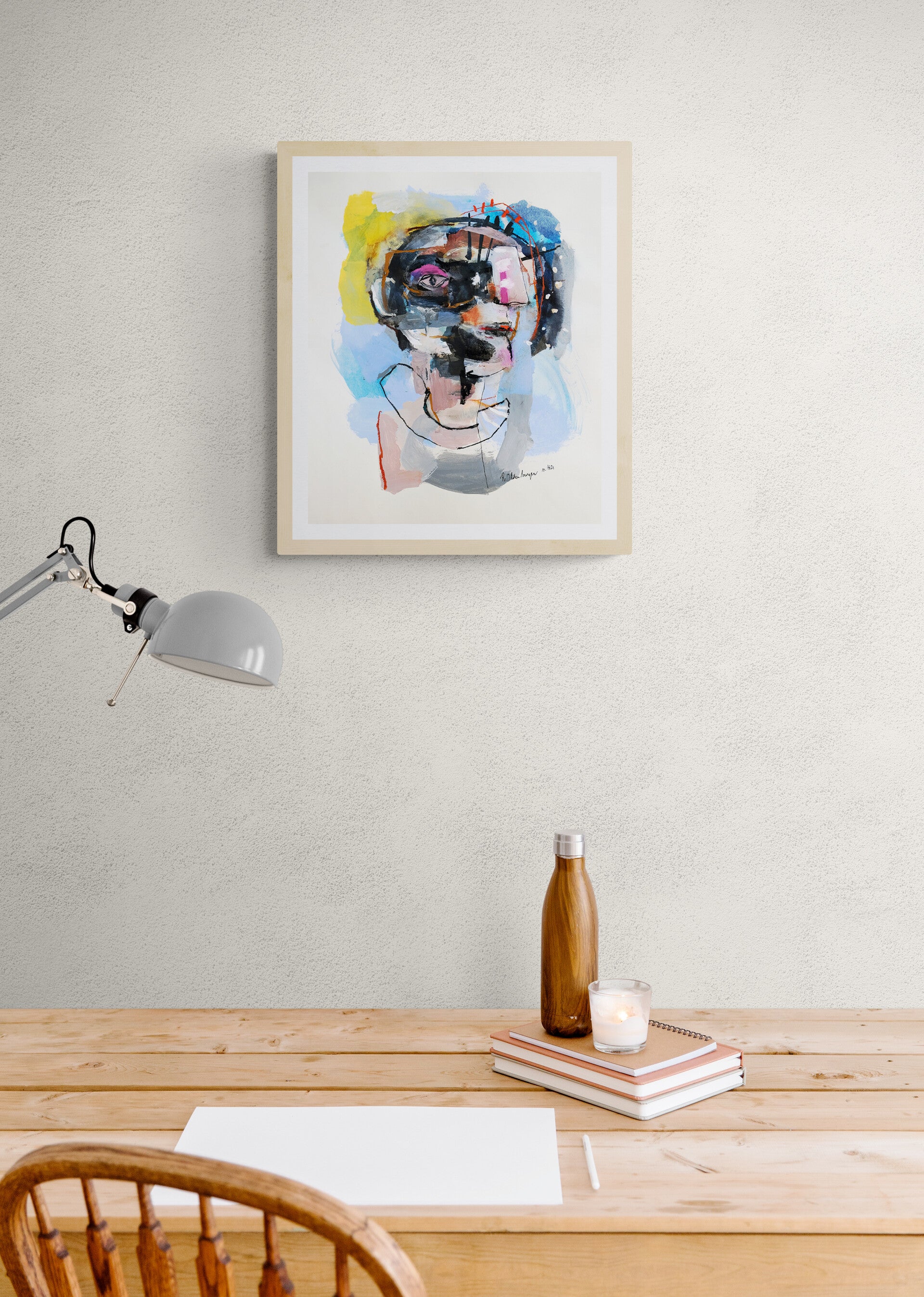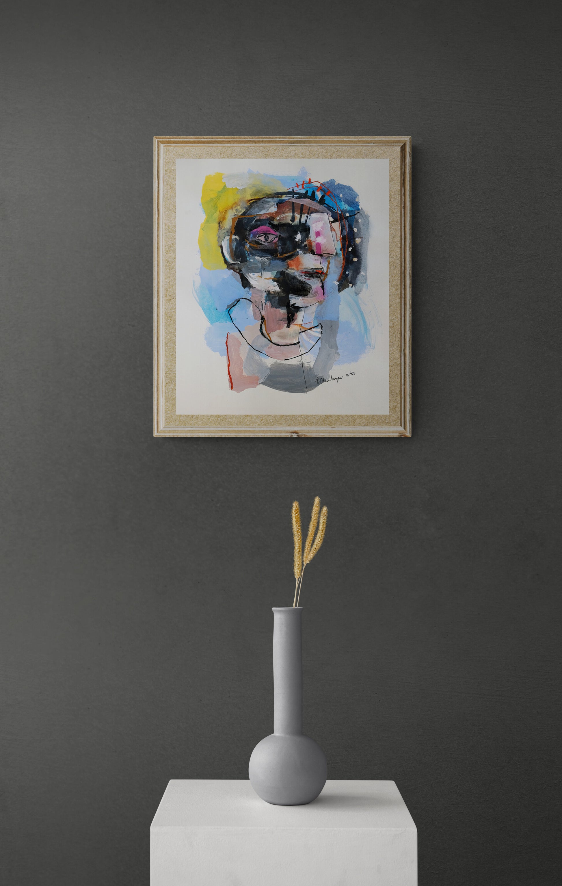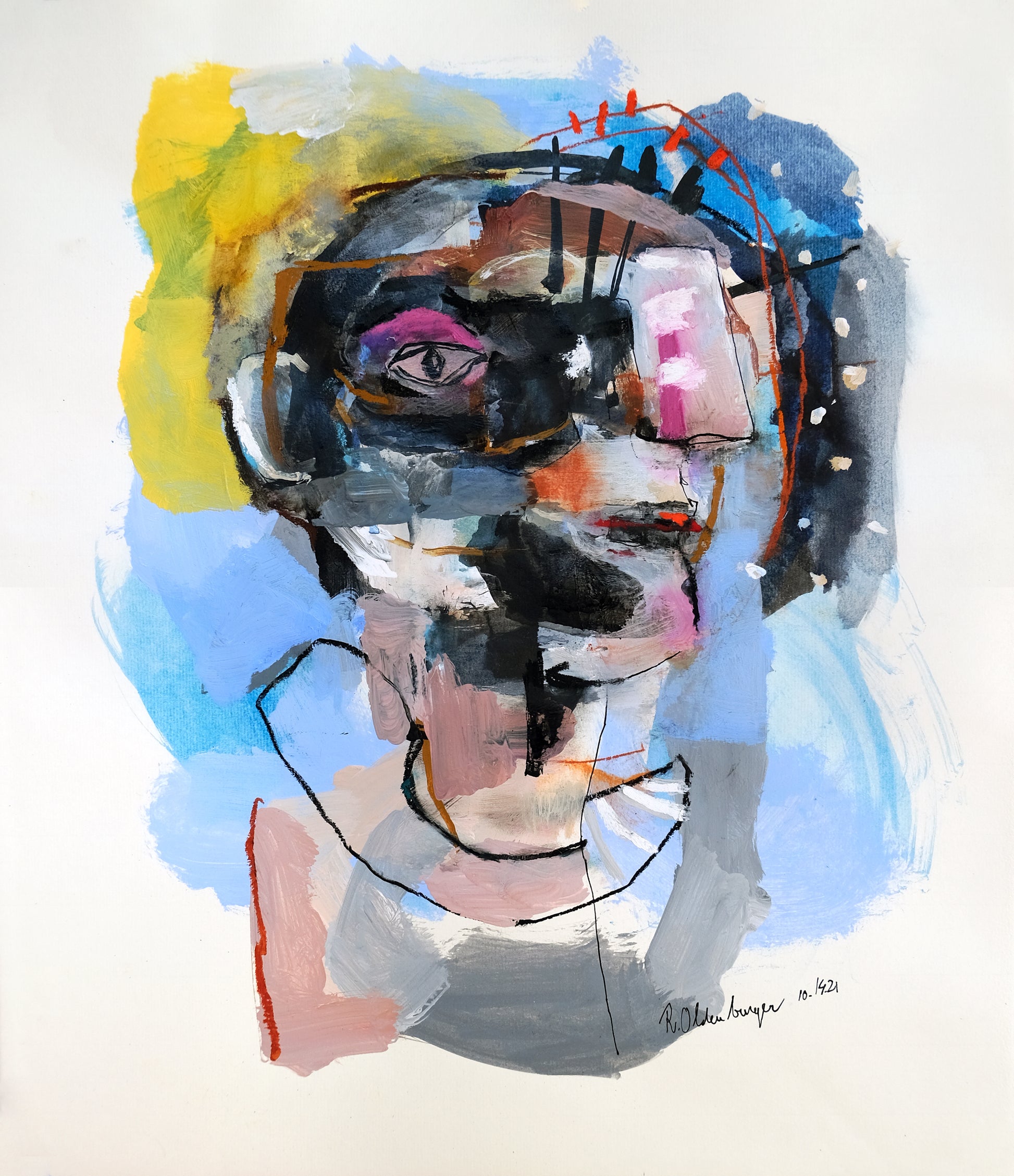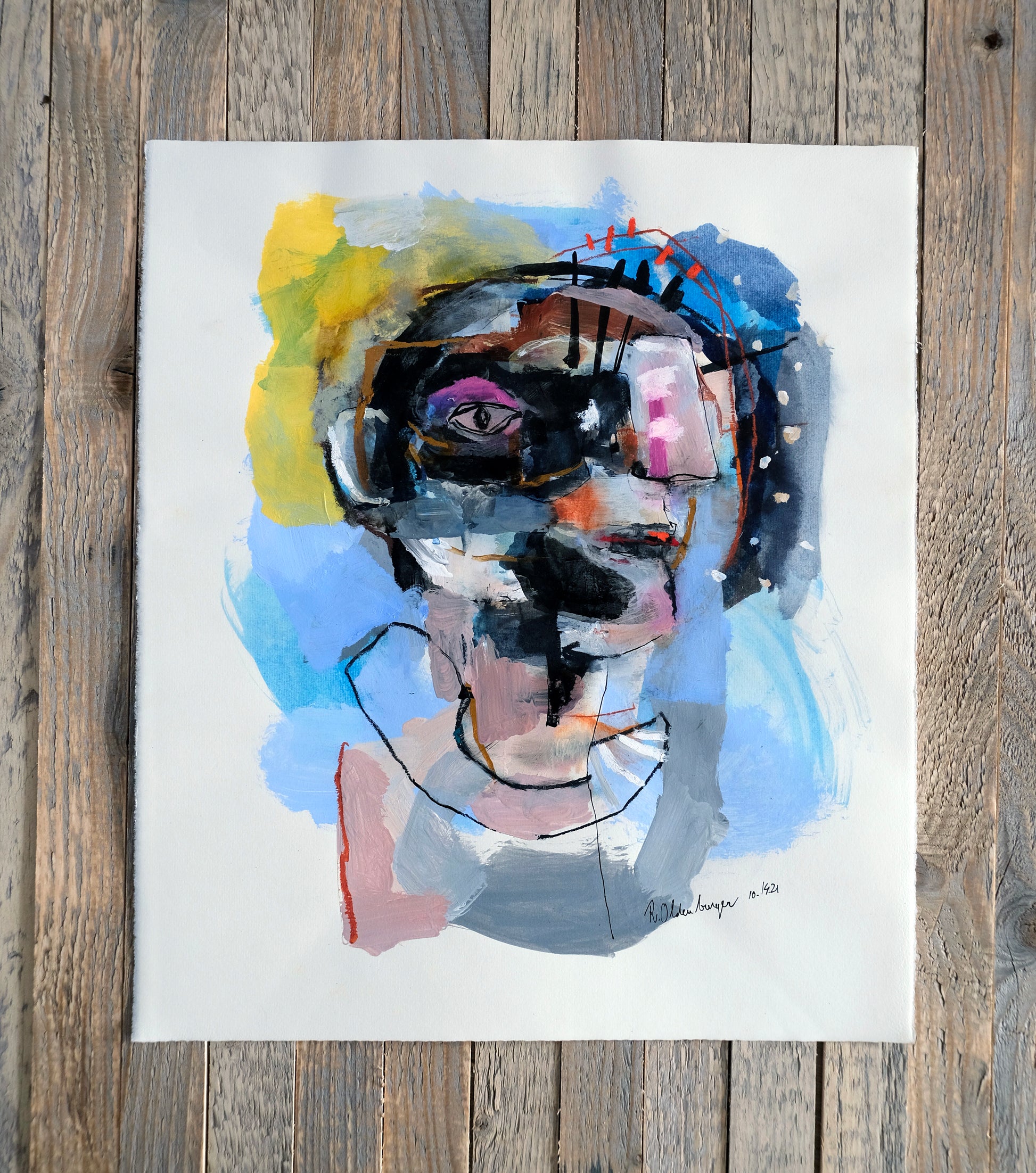This original work on paper titled "Visionary" is 15x18 inches in ink, acrylic, pastel, oil pastel and water color on Hahnemühle paper. It was made in Los Angeles, 2021 and is signed and dated on the front. This work will ship in a cardboard box with a certificate of authenticity included.
