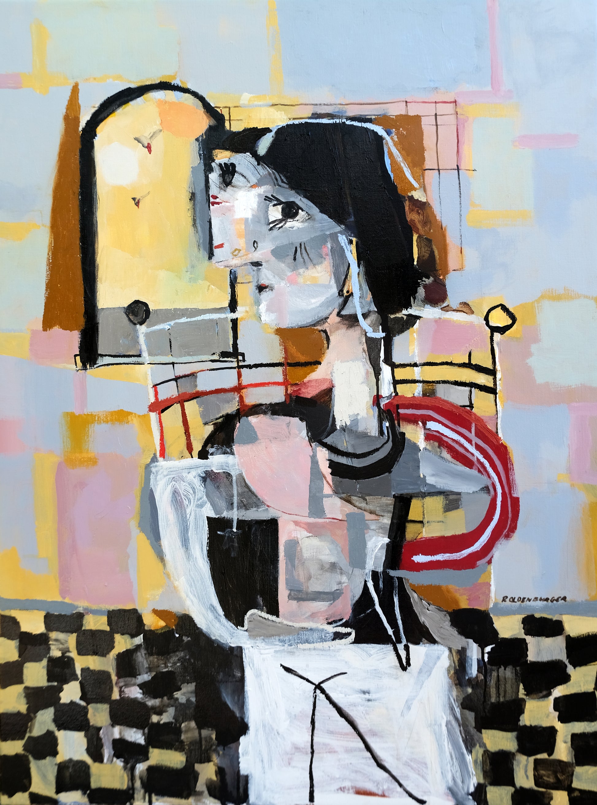 This original painting titled "Woman by the Window" is 30x40 inches in charcoal, acrylic, oil on linen canvas. It was made in Los Angeles, July 2022 and is signed on the front and dated on the back. This painting will ship stretched, ready to hang and with a certificate of authenticity included.